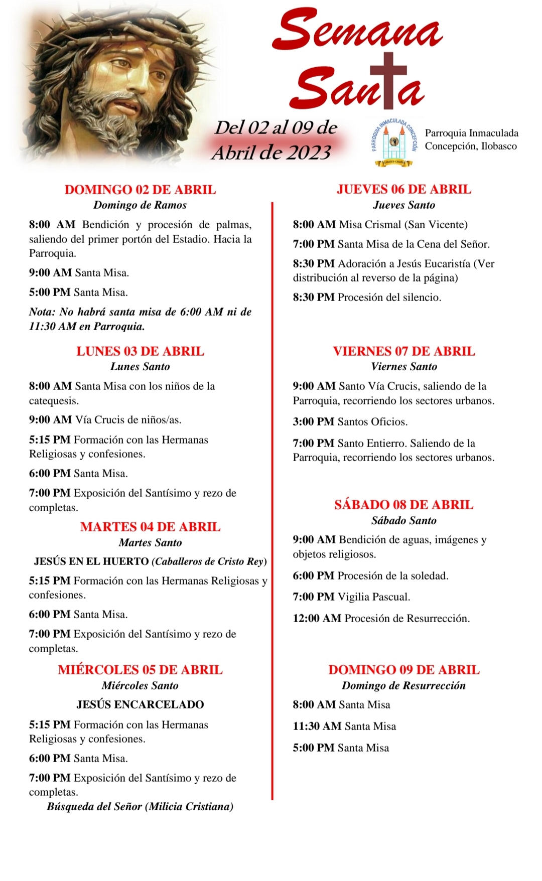 Programación de sema santa 2023